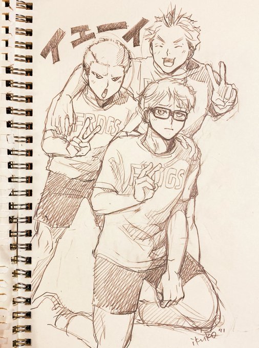 決勝ポイント。 取った本人は控えめなガッツポーズ。(でも3秒後にコガネとハイタッチする) 昨日楠本のHR見たら描きたくなってしまったの😭✨ 非公式写真集はアナログ絵だけにしたいなと思っていてあと何枚か新しいのを描きます🥰💕 #haikyuufanart #月島蛍