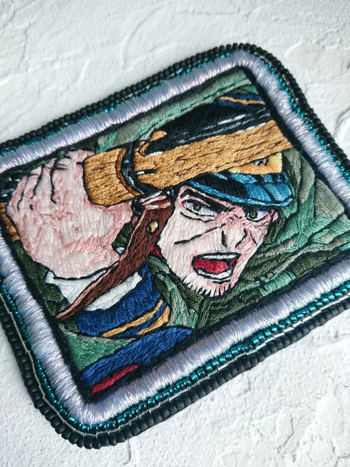 ㊗️月島軍曹お誕生日おめでとうございます🎉🍙💚 あなたが幸せな道を選べて良かった。 これからは、お風呂にゆっくり浸かってください♨️ #月島基生誕祭2023 #月島基誕生祭2023 #月島軍曹 #月島基 #ゴールデンカムイ #キャラ刺繍 #金カム手芸部