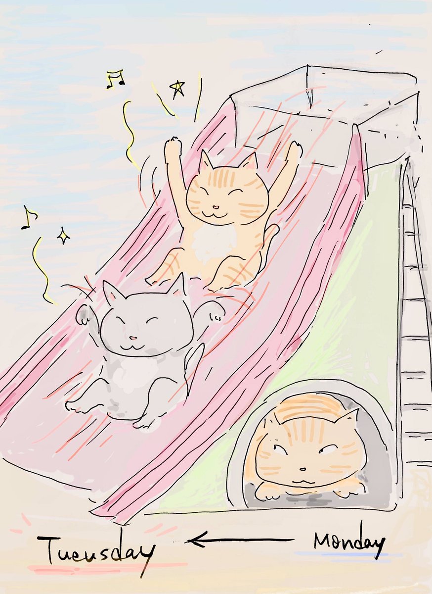 🐱:わーい♪乗り越えたにゃ〜🙌 🐱:峠を越えた!嬉しいにゃ〜♬〜 ……月曜が過ぎただけやけど…ま、確かに大事だニャby山越えだるい巨大🐱 #1コマ #イラスト #猫 #山 #月曜 #越えた #嬉しい #イラスト好きな人と繋がりたい #猫好きさんと繋がりたい #絵師さんと繋がりたい #絵描きさんと繋がりたい