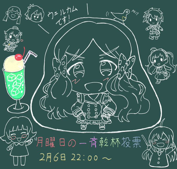 本日22時から #月曜日の一斉乾杯投票 二軒目!開催です! 合同ライブの感想を乾杯しつつ語り合いましょう! #フリーターロコ に是非投票も!お願いしま〜す! #ミリオンキャスティング #月曜日のクリームソーダドカ投げパーティー