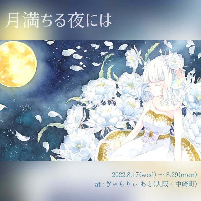 【出展のお知らせ】 「#月満ちる夜には 」に出展致します。 大阪・ぎゃらりぃあと様にて。(@Ato10Gallery ) 🌕期間🌕8/17-8/29 🌔時間🌖12時-20時(月曜18時まで) 額装作品通販有。ドローイング、ポストカード、イラスト集は現地購入できます。 宜しくお願いいたします🌗 gallery-ato.jimdofree.com/%E6%9C%88%E6%B…