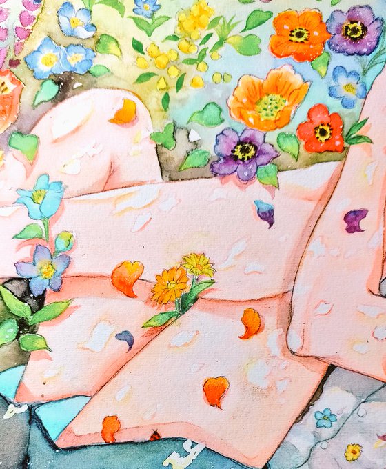 「花埋め少年~フラワー~」 絵本のようなシンプルなタッチで可愛らしく描きました🌼☺🌷🦋 #華に魅せられて #月織堂 #アナログ絵 #ミニ原画 #イラスト好きさんと繋がりたい #手描き twitter.com/hkr_8/status/1…