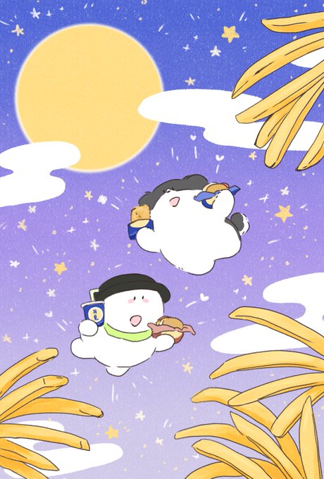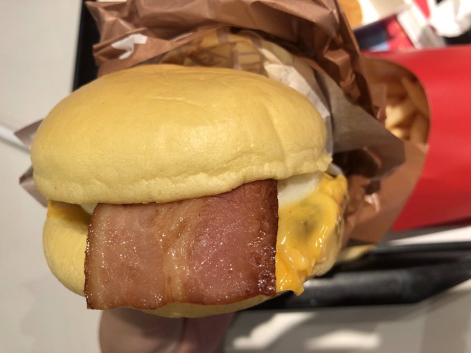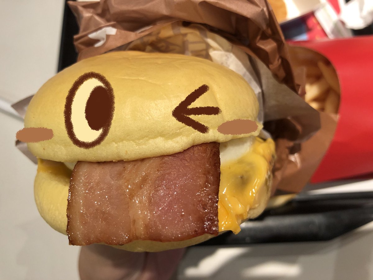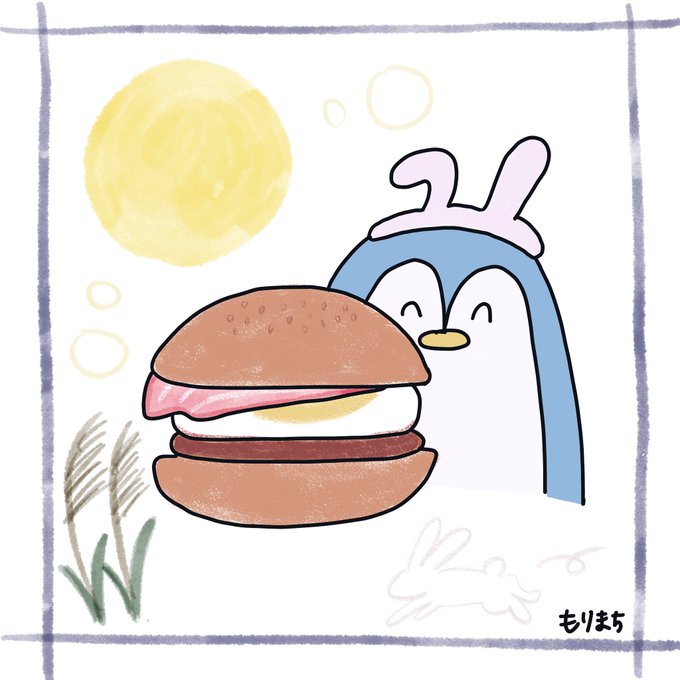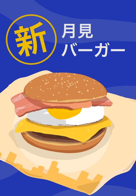 昨日すき焼き月見やっと食べれた〜🎑 具が全て濃厚なもんで、すき焼き!というよりもジャンク好きが好みそうな濃い味でポテトとよく合った🍟 バンズが他の月見と違ってたのも良かったな〜 #イラスト好きさんと繋がりたい #イラスト #月見バーガー