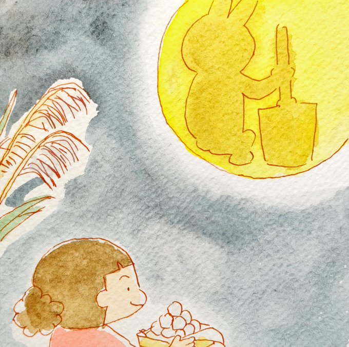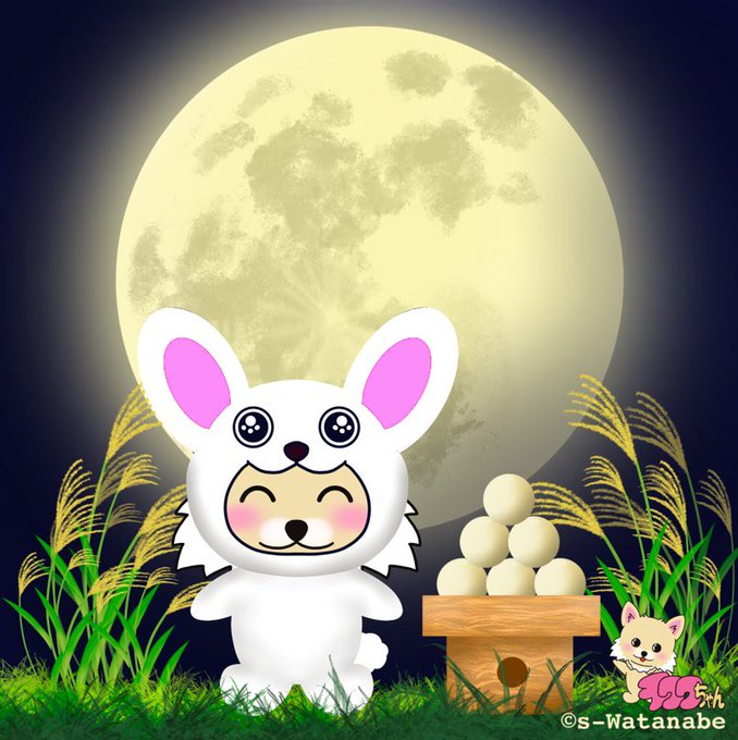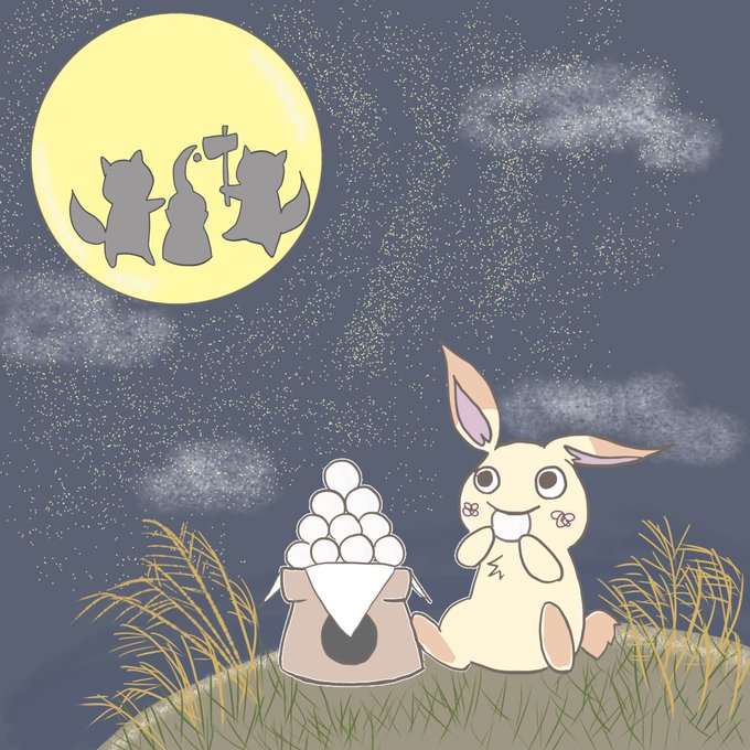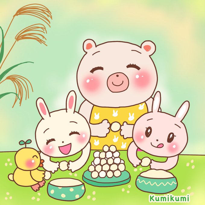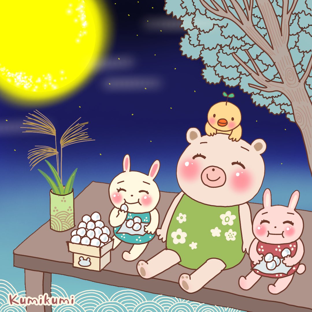 おはようございます☀ 今夜は十五夜🎑 綺麗な月が見えるといいですね☺️🌕✨ 今日もよろしくお願いします☺️✨ #かわいい動物イラスト #ほっこりイラスト #イラスト #月見団子 #十五夜 #お月見 #illustration #月が綺麗ですね