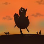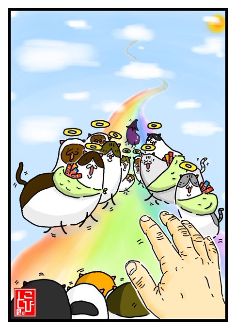 また来年と約束して ナスと帰って行く‥ネコ #猫 #猫好きさんと繋がりたい #猫の居る暮らし #イラスト #イラスト好きな人と繋がりたい #絵 #絵描きさんと繫がりたい #一日一絵 #絵柄が好みって人にフォローされたい #月遅れ盆送り火 #精霊牛 #お盆休み最終日