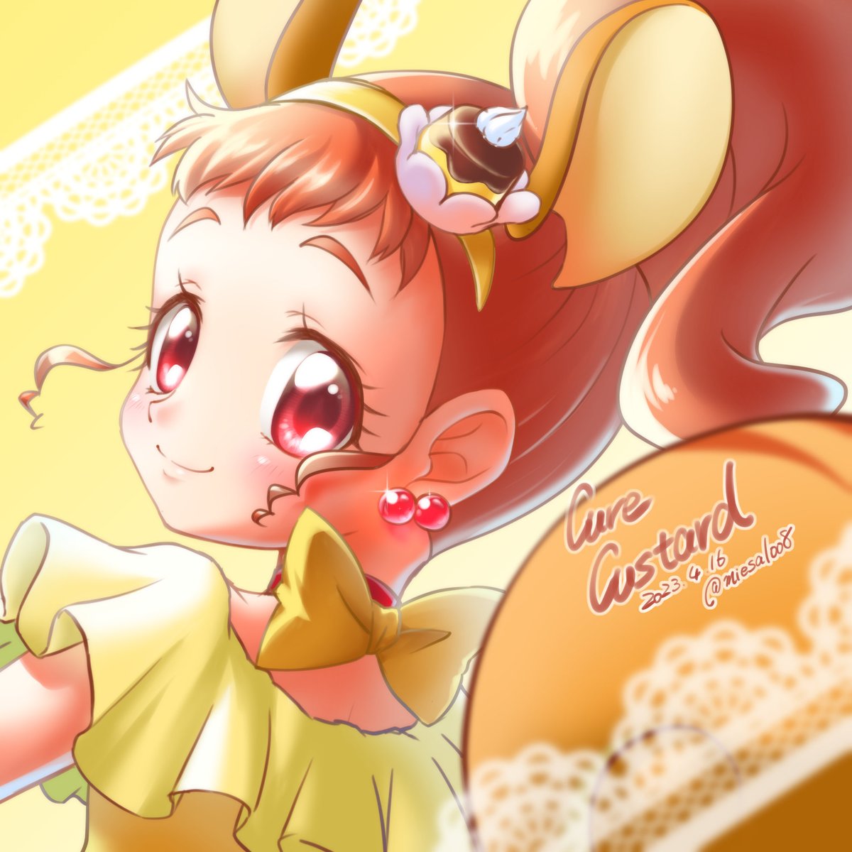 なんとか今日のうちに描けたキュアカスタードさんをアップ。お誕生日おめでとうひまりん! 毎回言っている気がするけど、大きな尻尾がついているのがとにかく可愛くて好きなのです。 #有栖川ひまり生誕祭 #有栖川ひまり生誕祭2022 #キュアカスタード生誕祭 #キュアカスタード生誕祭2022