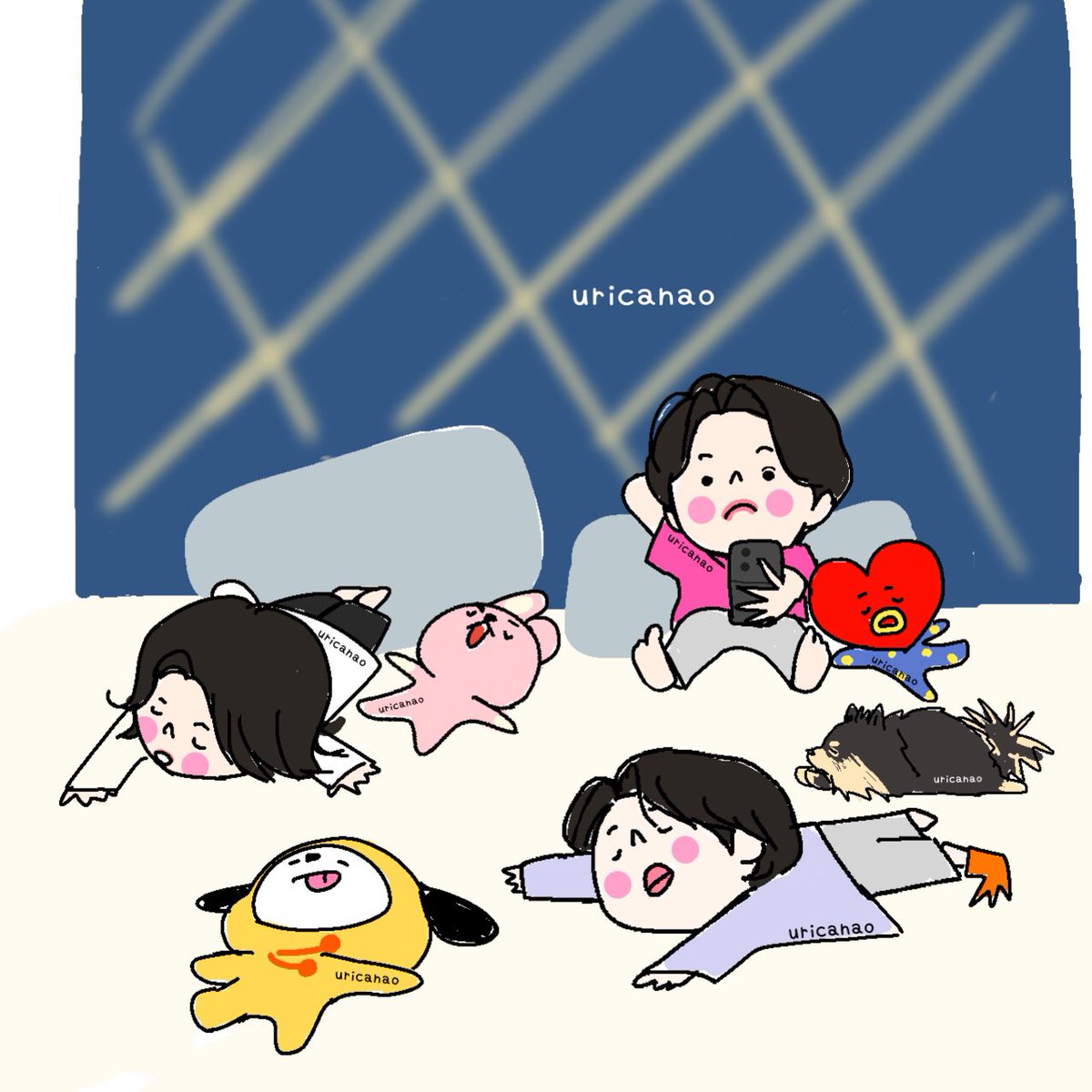 きのーすでに描けてたのに友達が遊ぼー来たので上げれずにいたホントはこんなに居たんじゃないのシリーズ ⚠️イラストの保存&使用の際は下にある注意事項お守りください🙇♂️ #熱いゲームを終えた者たち #服装はイメージです #btsfanart