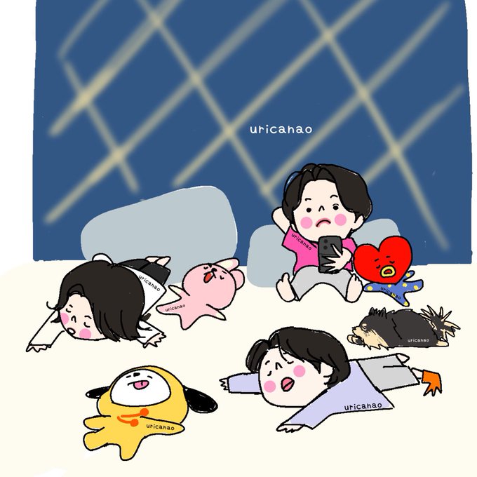片目くもってたのか📱画面反射してたのか👓カワイすぎか🐨♡ ⚠️イラストの保存&使用の際は下にある注意事項お守りください🙇♂️ #こんなに写ってたっけシリーズ #組体操扇 #服装はイメージです #btsfanart