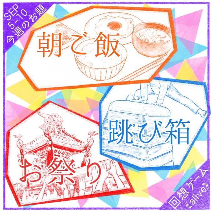 / 今週のお題の振り返りだぞい🎵 想い出✨をLet's投稿じゃ~📮 みんなの想い出を読むのも楽しいぞ~🥳 \ 🍚#朝ご飯 twitter.com/kaiso_game/sta… 🏮#お祭り twitter.com/kaiso_game/sta… 🏃🏻#跳び箱 twitter.com/kaiso_game/sta… #想い出 #思い出 #書く習慣 #文章 #イラストレーター #イラスト