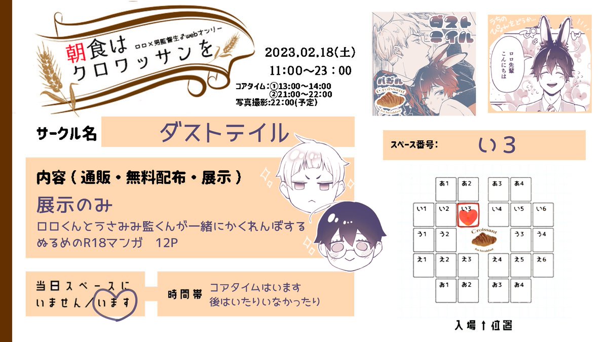 色々バタバタしてたので途中までしか完成してませんがいちゃらぶロロ監♂すけべまんが展示します❣️是非遊びに来てくだちゃい🥹💜みんなとワチャワチャするの楽しみなんだわな🎶 #朝クロ0218 twitter.com/i/web/status/1…