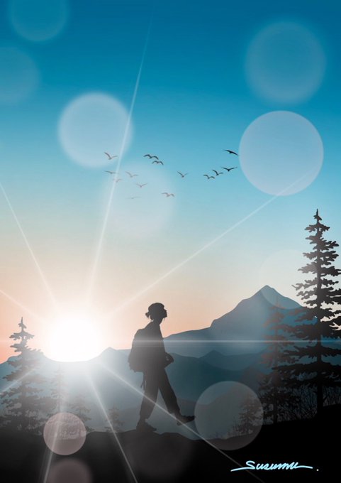 「日の出の出発」 日曜日の夜。 次の日の仕事に行きたくなくてズル休みする事を決意。 どこへ行くかは行き当たりばったり。 とりあえず早朝からあてもなく歩き出した。 #ズル休み #朝日 #絵描きさんと繋がりたい #イラスト好きな人と繋がりたい #ファインダー越しの私の世界 #キリトリセカイ #イラスト