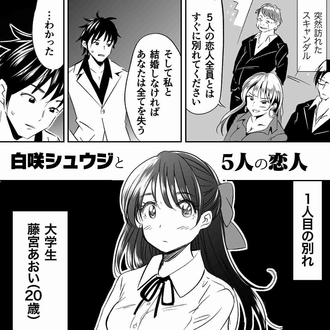 「白咲シュウジと5人の恋人」 受賞したら続きが描けるので、よかったら拡散にご協力お願いします🙏✨ #誠意 をテーマに描きました! #クニエ漫画グランプリ2022 #朝日ねこ漫画 #漫画が読めるハッシュタグ