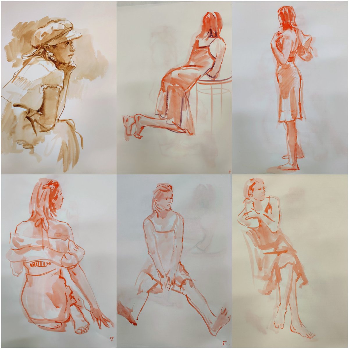 今年最後の教室は人物画講座でした。毎回6ポーズ3時間で描き上げるので、短時間に集中して描きたい方に好評です。一回の飛び入り参加も可能ですので、皆様のご参加お待ちしてます。 #朝日カルチャー新宿 #ステップアップ人物画 #第4水曜日 #水彩画