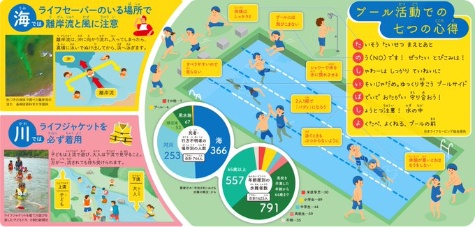 6/19付 #朝日小学生新聞【見ればスッキリ!】 #インフォグラフィック 連載3回目は #水難事故 防止 川では大人は子供より下流に。 #ライフジャケット 着用。 海は #ライフセーバー のいる場所で #離岸流 注意。 プールは7つの心得!「の」! #イラスト #イラストレーター #infographics twitter.com/fukui164/statu…