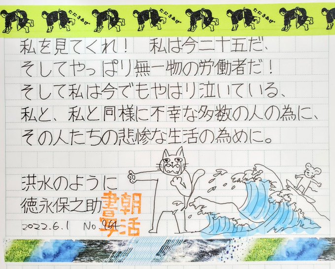 字は、「女なら字くらい綺麗に書けよ!」と、小学校の頃担任の先生に何度も書き直しさせられた思い出。 イラストは人物を描くのが苦手。 そして、何をやっても不器用。そんなmugashikaoの朝活。 #朝活 #朝活書写 #朝活書写_1103 #SPYFAMILY #アーニャ #イラスト twitter.com/asakatsu_sho…