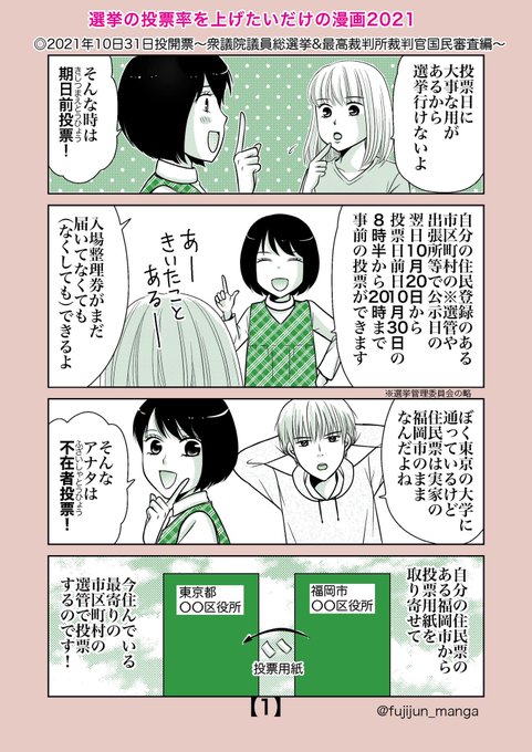 選挙の投票率を上げたいだけの漫画ver.2021 #comic #manga #衆院選 #比例区 #小選挙区 #創作漫画 #期日前投票 #不在者投票 #一律給付金 #選挙にいこう #わたしも投票します #漫画好きと繋がりたい #衆議院議員総選挙2021 #漫画が読めるハッシュタグ 作ふじじゅん