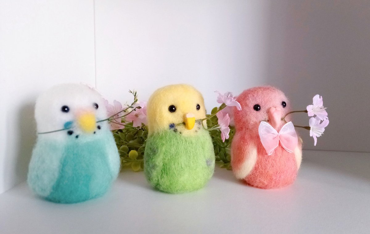 こちらのインコさん達を委託先で販売することになりました🐥 minneでは、6月20日までの期間限定販売となります。 宜しくお願い致します。 #セキセイインコ #羊毛フェルト #ハンドメイド #期間限定 #minneで販売中 minne.com/@magunekoko