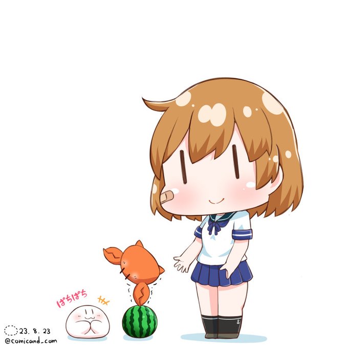 提督、夏真っ盛りですね! 朧、この季節大好きなんです! カニさんも嬉しそう、ほら! 去年よりも嬉しさが パワーアップしてるのだ! ( ˘ω˘ ) ★連続1895日目 #艦これ版深夜の真剣お絵描き60分一本勝負 #艦これ版真剣お絵描き60分一本勝負_20230823 #朧 #艦隊これくしょん #艦これ