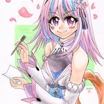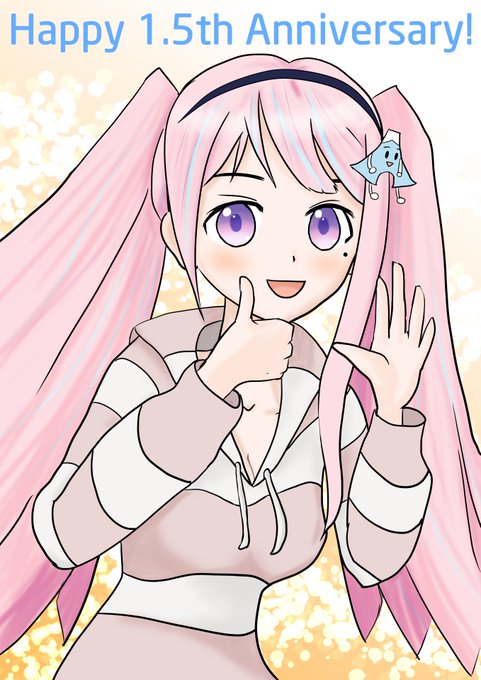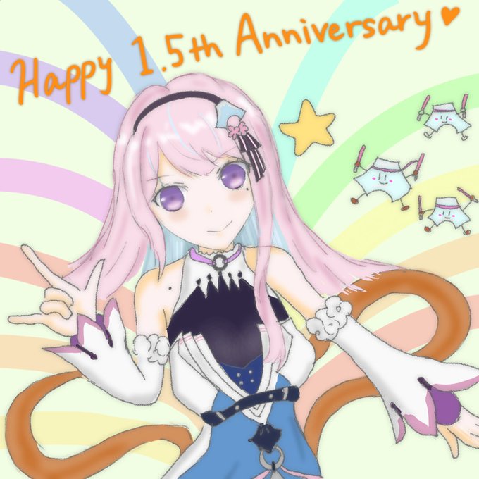 サクヤちゃん、活動1.5周年、おめでとう~ いつもみんなを楽しませようとしてる姿勢に元気を貰ってるよ。指のポーズは2進数で1.5を表してます(嘘です) #木乃華サクヤ1年と半分記念 #サクヤ絵馬 #木乃華サクヤ