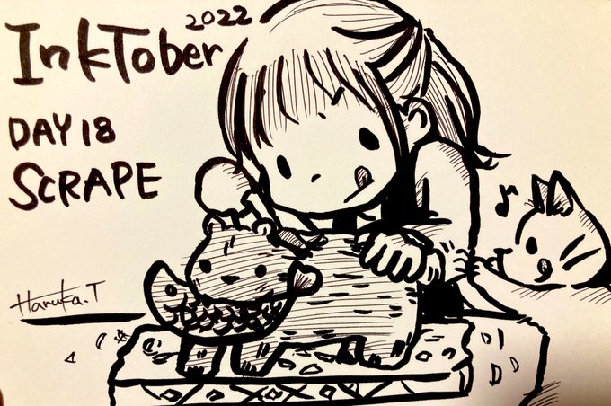 Inktober day18 SCRAPE The process of making a bear by scraping wood. It is famous in Hokkaido. #inktober2022 #inkart #art #kidlit #inktober #kidlitart #illust #Halloween #cat #木彫りのクマ #SCRAPE #carvedwood #bear