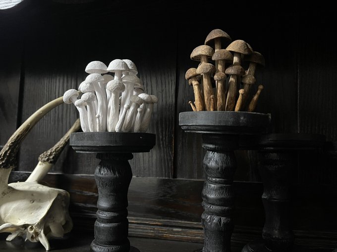 シメジの彫刻。 野生のシメジではなく、 パックのシメジをイメージして作りました。 (前回の投稿より少しボリュームを増やしました。) 後日、個展会場に追加で納品させて頂きます。 #ボリス雑貨店 #シメジ #木彫 #小島秋彦 #Shimejimushroom #akihikokojima
