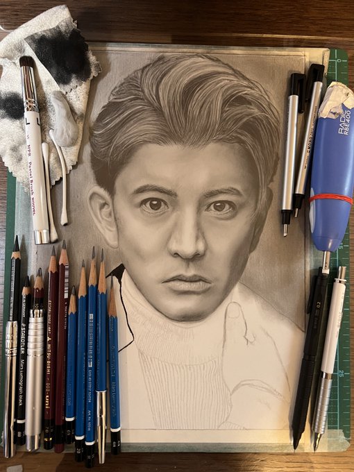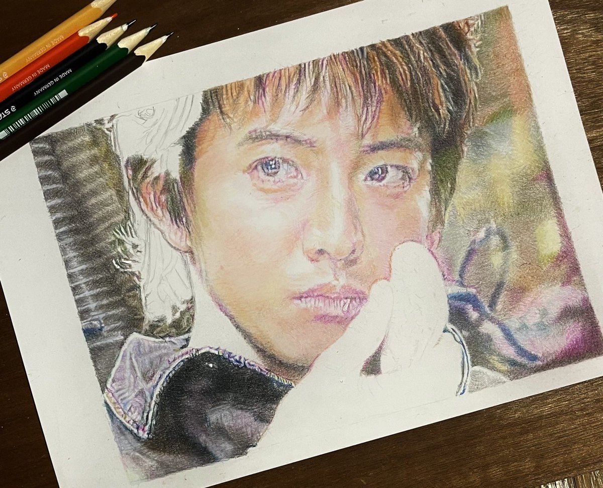 添えてる色鉛筆はご本人が インスタでワンピース絵✏️描かれたのと 同じモノ✨ 木村拓哉さんのとき いつも仕上げに使うようにしてます 完成目指して乗り越えろ! #木村拓哉 #ステッドラーエルゴソフト #色鉛筆画
