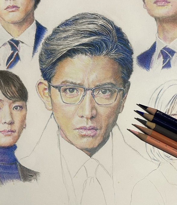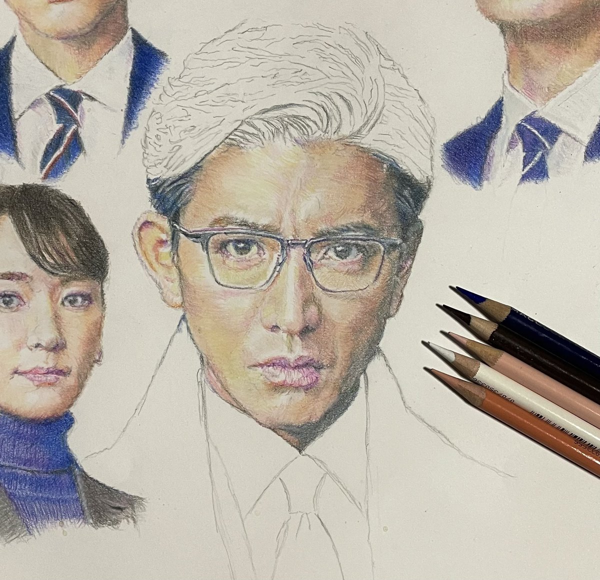 シブいグレー髪も描き終えて✏️ いよいよドラマもこれから後半戦📺 大きな山場を迎えて 絵にも表現できないような 真相がこれから展開されるかも! ますます目が離せないね✨ #風間公親ー教場0ー #木村拓哉 #色鉛筆画