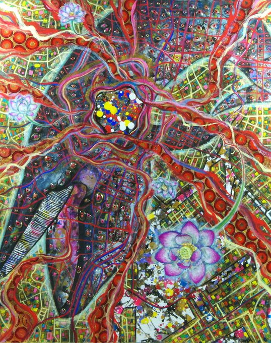 TOKYO MONSTER 「GoTo極楽_6」 アクリル絵具、東京の地図、真鍮箔、海岸のプラスチック片、ペン、カンバス F3 2022 #現代アート #contemporaryart #art #marineplastic #海洋プラスチック #芸術の輪 #みんなで楽しむTwitter展示会 #artilljp #木白牧