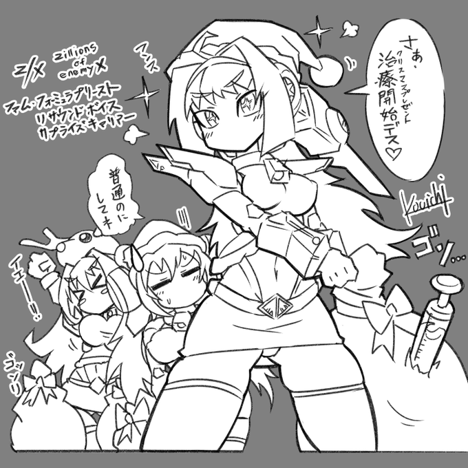 メリークリスマス! 今回はZ/Xで担当したファムのサンタコスver.ラクガキ_(:3」∠)_ ロボ娘にだってサンタや水着姿があってもイイ!いや、あってくれ! という、欲にまみれたファンアートです( 来月1/26日発売の新弾『#未来エターナルアーク』でフォーミュラプリーストと握手! #ZX_TCG