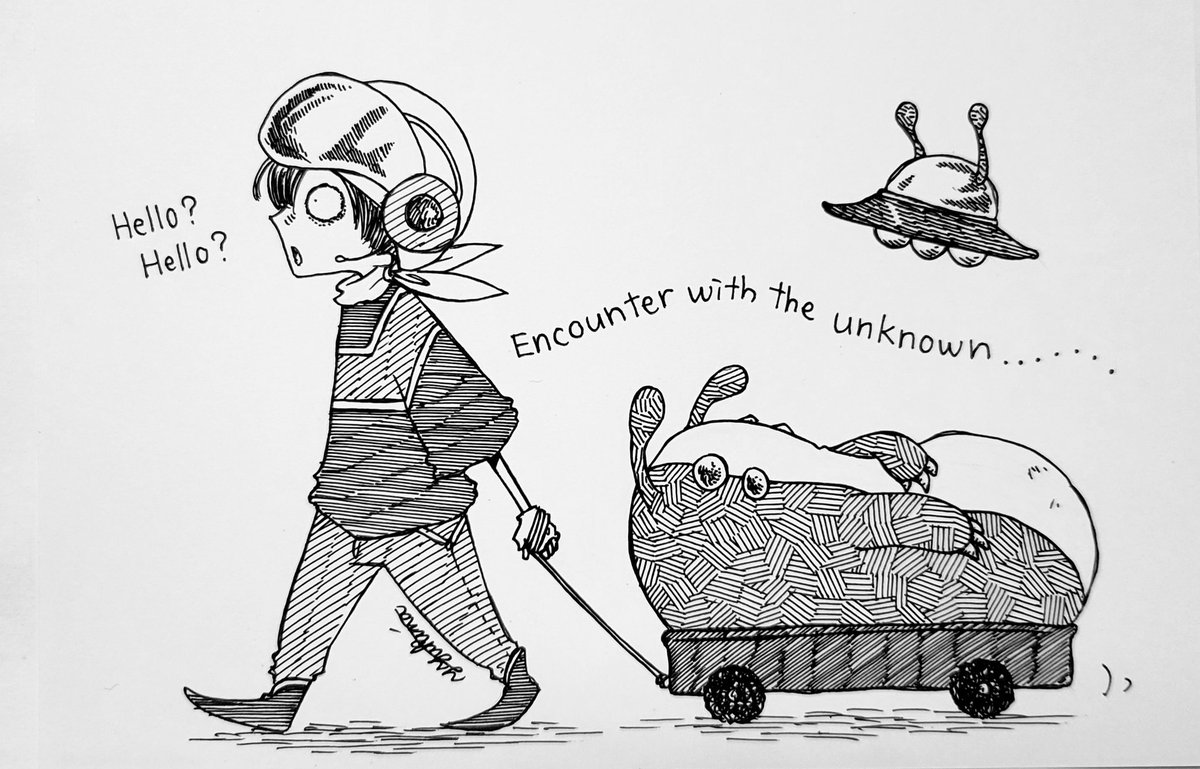 「知らない何かに、出会った~」#とみざわイラスト #未知との遭遇 #イラスト #イラストレーター #イラスト好きな人と繋がりたい #絵柄好みって人にフォローされたい #絵描きさんと繋がりたい #よろしくお願いします よい一日を。