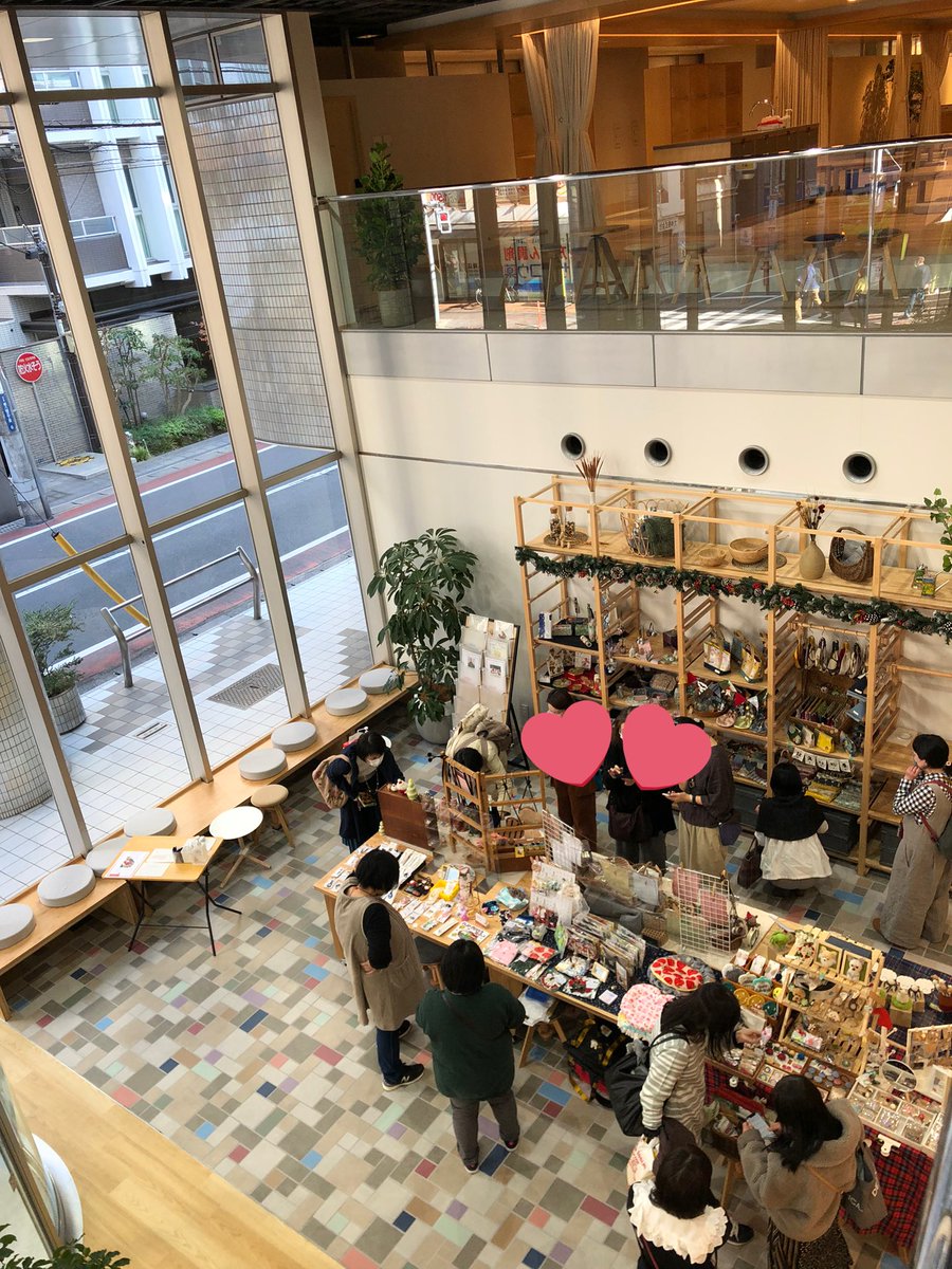 会場はこんな感じです。 吹き抜けの広い空間なので、密にならずゆっくりご覧になれます。 熱烈にお越しをお待ちしてます🙏 #いちかわ手づくり市 #みんなでクリスマス手づくり市 #羊毛フェルト #本八幡