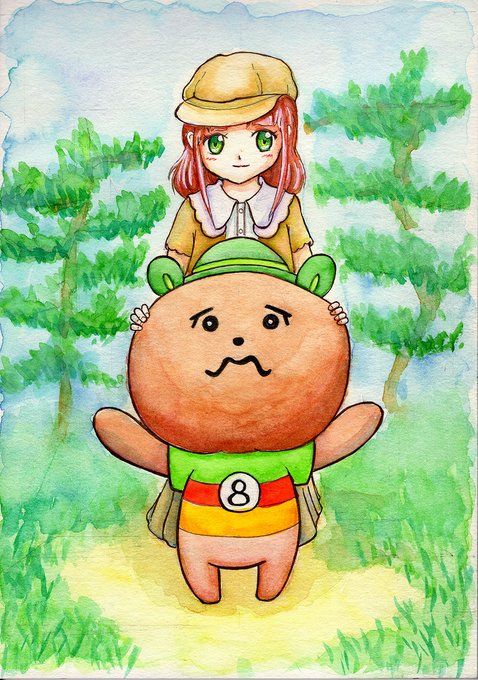 #やわてぃアート を描いてみたよ。 ぼくの #本八幡 漫画の「ぎんなんカルテット」のはるかと共演してもらいました。 やわてぃは見るだけじゃなく描いてても癒やされるね。 #水彩 #イラスト好きさんと繋がりたい #絵描きさんと繫がりたい #ご当地キャラ #やわてぃ twitter.com/yawatea/stat…