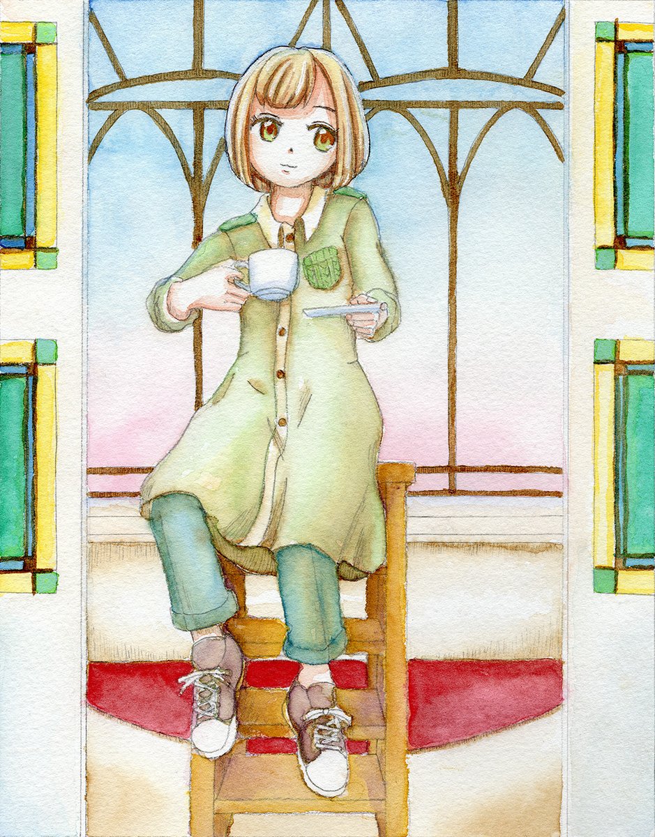 「みゆきと暖か時間のコーヒー」 #本八幡 にあるTOY'S COFFEEさんの「深雪(みゆき)ブレンド」を#擬人化 してみました。 漫画「ぎんなんカルテット」の主人公のひとりで末っ子っぽくてみんなの妹のような子。 頑固なのが玉に瑕。 #イラスト好きさんと繋がりたい #絵描きさんと繋がりたい