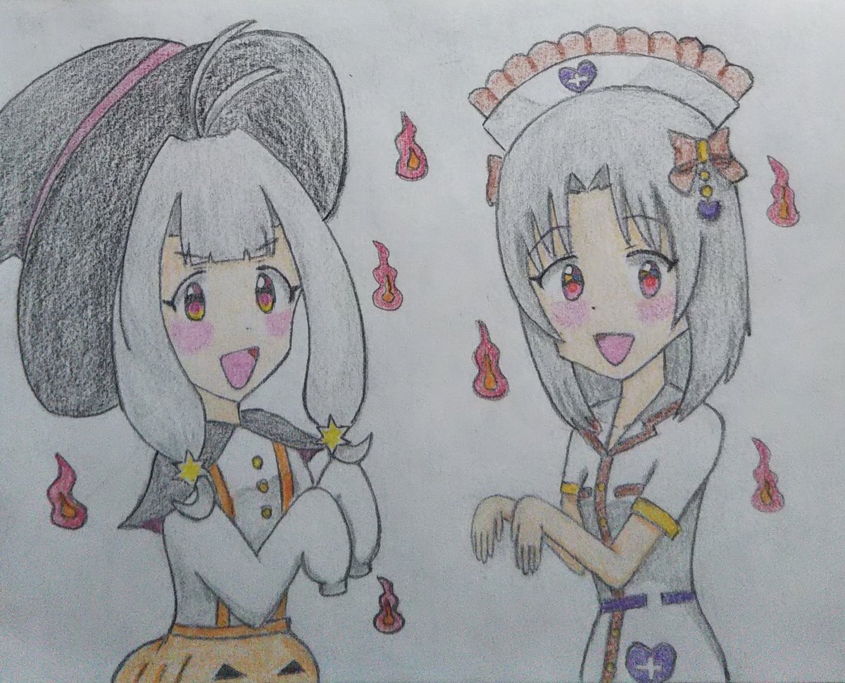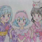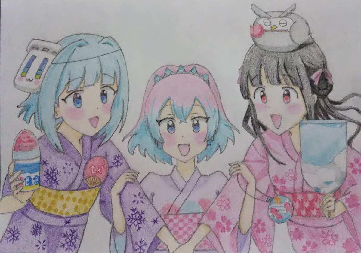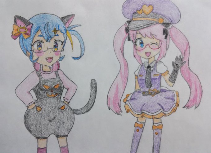 #11月27日はパソ館たんのバースデー #パソ館たん 、お誕生日おめでとうございます!🎉🎂✨🎁✨(*≧∇≦)ノ🖥️🐈️ イラストは #池袋4姉妹 です。 また描きますね! #カメ館たん #本店たん #池西たん #ビッカメ娘 ( #ナイセン ) #ビッカメ娘を描き隊 #過去絵 #模写 #色鉛筆 #絵描きさんと繫がりたい