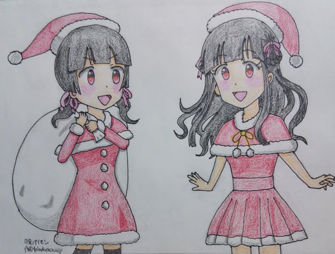 #池西たん と #本店たん お姉ちゃん 描きましたー!(*≧∇≦)ノ🐈️ 「メリークリスマス!🎉✨🎁✨」 #クリスマスイラスト #ビッカメ娘 ( #ナイセン ) #ビッカメ娘を描き隊 #ファンアート #色鉛筆 #絵描きさんとつながりたい