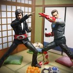 #夜のフィギュア撮影会 4/11 お題『決めポーズ』過去作 来日中に日本の有名ヒーローと対面し決めポーズで記念撮影するトニー・スターク。 #仮面ライダー #本郷猛 #ironman #TonyStark #SHFiguarts