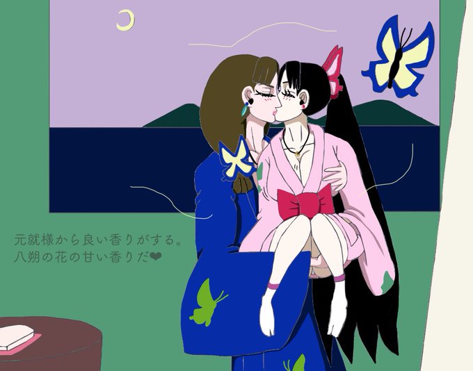 秘密の部屋で二人きりで甘い接吻💋 178cmと150cmと身長差があるので、お姫様抱っこしてのチュウか、座位でのチュウになりますね。 身長差の設定ですが、少しさねねずをかじってます🍃🎀 #創作戦国 #村上水軍 #毛利元就 #オリジナルイラスト #絵描きさんと繋がりたい