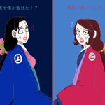 正室を決める選挙の結果に、ゾッと青ざめるふみをちゃんと美伊ちゃん。元就様も青ざめていた😱 選挙結果の詳細は、小説で明らかになるのでお待ちくださいませ! #創作戦国 #村上水軍 #妙玖 #オリジナルイラスト #絵描きさんと繋がりたい