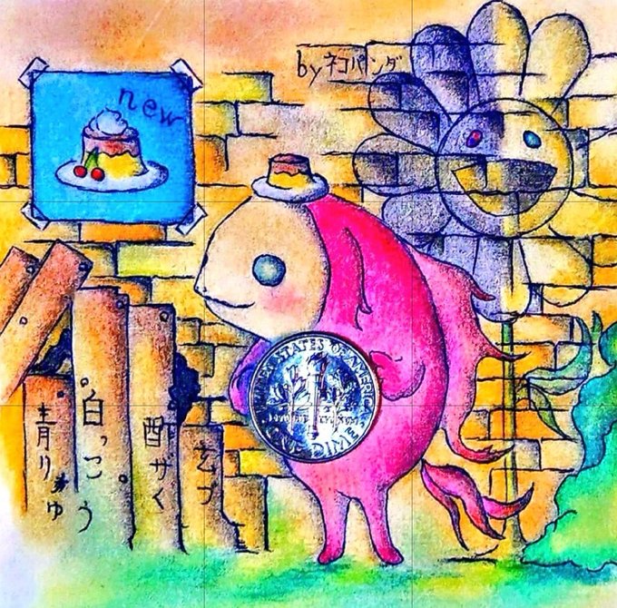 このお金でプリン🍮買えるかな 私は人魚🎵 Can I buy pudding with this money?🎶 #絵描きさんと繋がりたい #今月描いた絵を晒そう #村上隆 #artwork