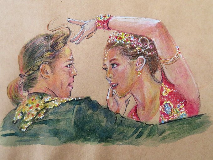 Conga and Rhythm is Gonna Get You , Ahora and Move 💘 #kanamuramoto #村元哉中 ⠀ #daisuketakahashi #髙橋大輔 #k7d1 #かなだい #watercolor #水彩 📷 : @anya3Lz3Lo