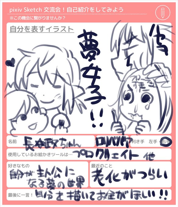 #9月になったのでフォロワーさんに自己紹介しようぜ #がんばれながまさちゃん #村長とリンク #戦場のフーガ 自分とゲームキャラを絡ませて描くの大好き夢女子だす。 報酬ありでお絵描きいたします 魔ゼさんぽ2回目ナレーションいたしました。