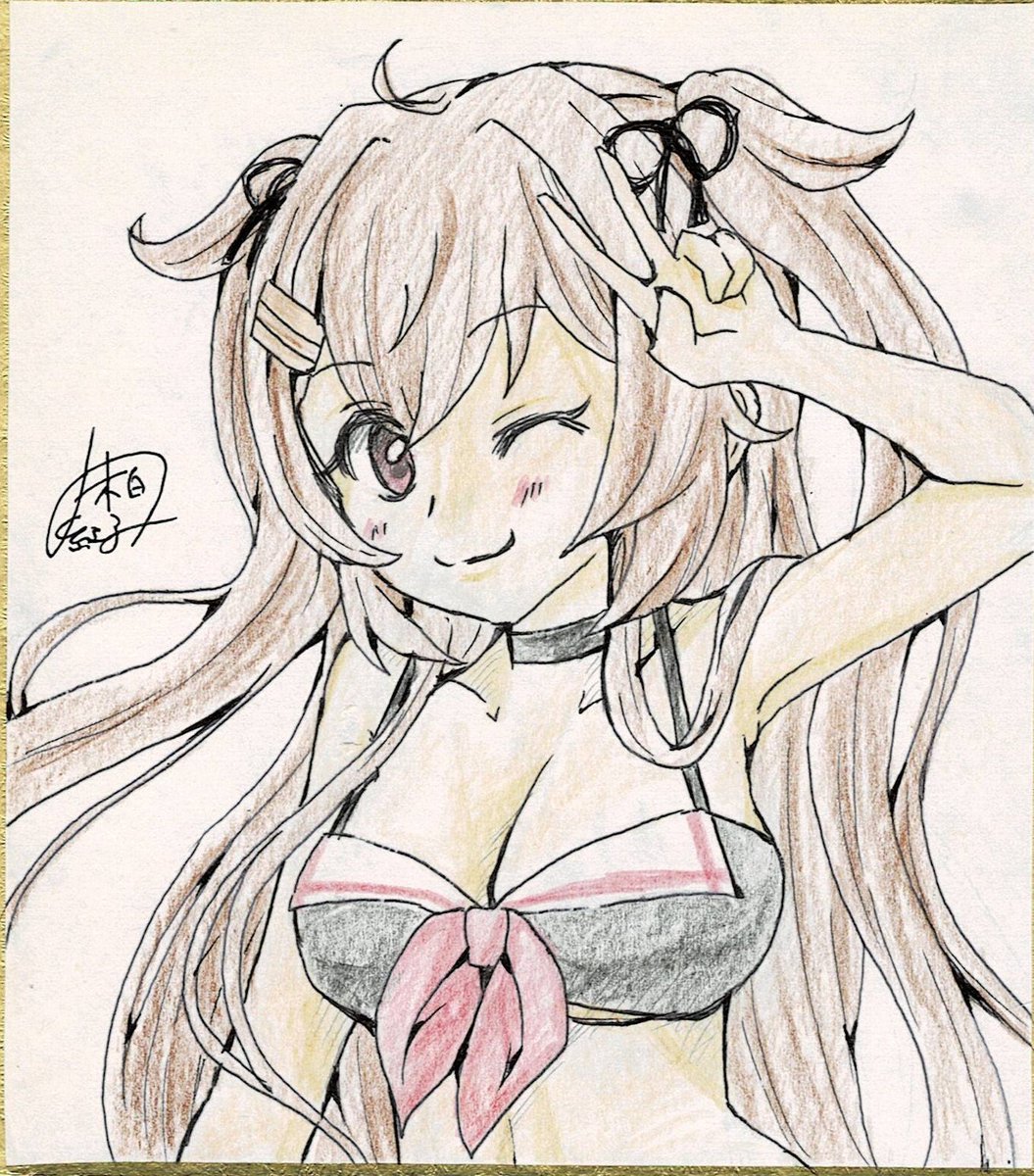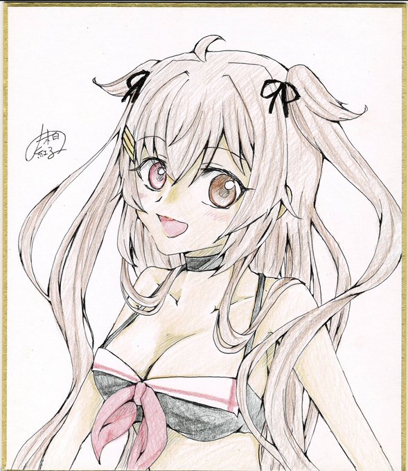 #あけましておめでとう #お正月イラスト #村雨改二 明けましておめでとうございます。 昨年は出産と育児で慌ただしく過ぎました。 今年もよろしくお願いします。 まとまったお絵かき時間とれなかったので色紙に描いた巫女村雨ちゃんでご挨拶です(*・ω・)