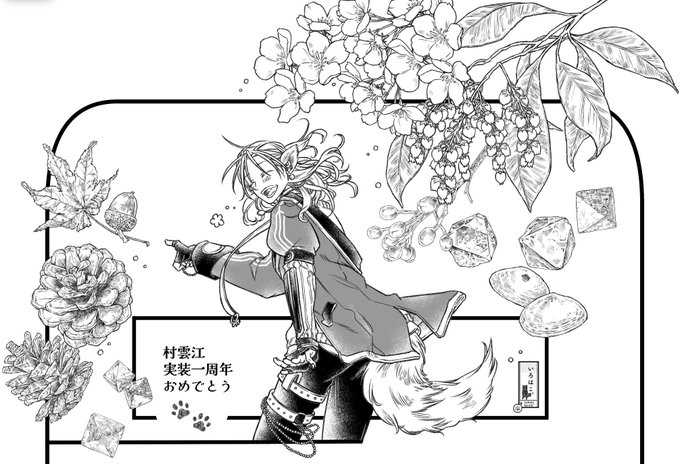 ギリギリ間に合ったー!! 雲さん1周年おめでとう🥰🥰🥰 あなたのおかげでとても楽しい1年を過ごせました。 これからもよろしくお願いします✨ #村雲江実装一周年 #2月9日は村雲江実装記念日