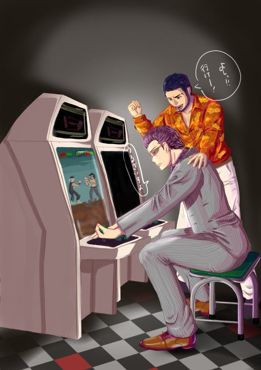 ロストジャッジメント追加コンテンツ。まだちょっとしかやってないけど、海藤さんと東くんが仲良さそうで何より😊 イラストは東くんが格ゲーをやっているところと言うニッチ過ぎるリクエストに答えたもの #海藤さん #東 #ロストジャッジメント #絵描きさんと繋がりたい