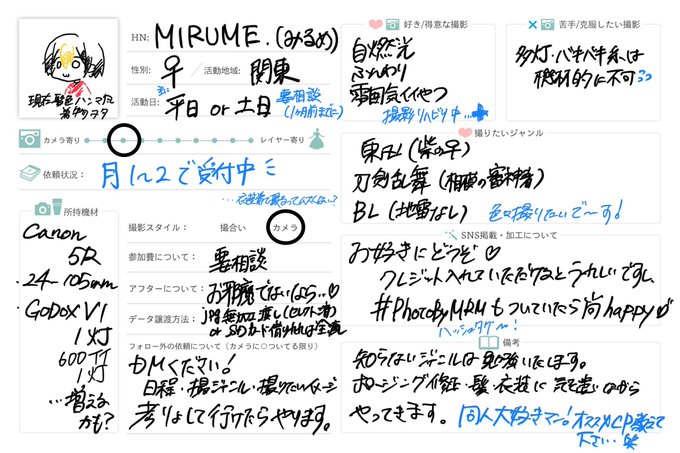 出戻りカメラマンです📷 RT&いいねで同族さんご挨拶させてください🙌 現在東卍にお熱🔥ですが色々なジャンルの撮影がしたいです✌️ #コスプレイヤーさんと繋がりたい #東リべレイヤーさんと繋がりたい #フォロワーさんのフォロワーさんと繋がりたい #PhotoByMRM