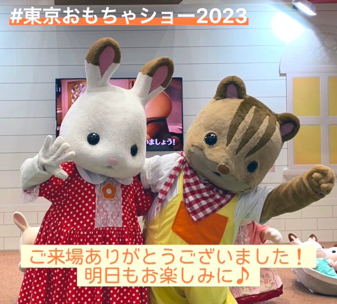 おはようございます🎶 本日はあいにくのお天気ですが、#東京おもちゃショー2023 二日目です! (9:00〜16:00) #シルバニアファミリー の仲間たちがみなさまをお待ちしています✨ #エポック社 ブースは西1ホール1-07です🎉
