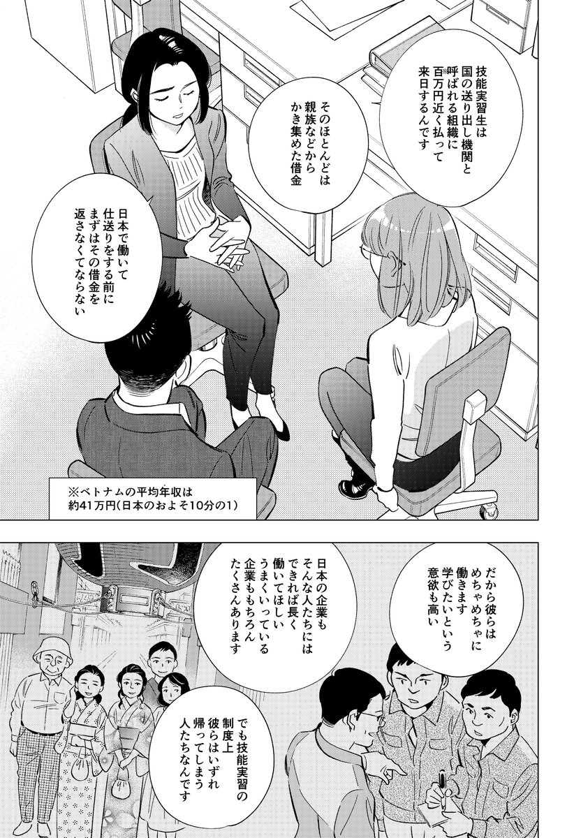 自作品で恐縮ですが、『技能実習制度』について取材したとき多く聞いたのは、 「国が掲げる”国際貢献”というお題目と、とにかく労働者が必要という日本社会や企業の実態が大きくズレている」という話でした。 現状の問題を直視し改善していく、これが第一歩になりますように。 #東京サラダボウル twitter.com/kuromaru_/stat…