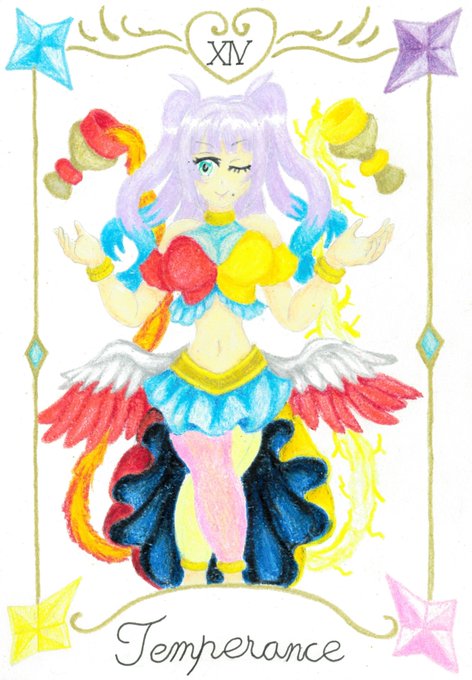 【祝トリア誕生日記念タロット】 14:節制~Temperance~ 誕生日おめでとう、トリア!! ミアとディオを纏めるブレーンであるトリアに相応しいカードです。 トリアにとって素晴らしい一年となりますように。 #トリア誕生日 #NumberS誕生日 #東京ドールズ #東京ドールズファンアート