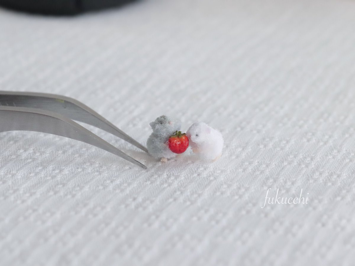 クシクシしてるハムちゃん達 丸っとしてて可愛いのですが 手から転がり落ちては拾ってを 何度も繰り返し疲れ果てました💦 もう作れないかもしれない🥹 #東京ドールハウスミニチュアショウ に連れて行きます 見に来てくださ〜い🙏🏻