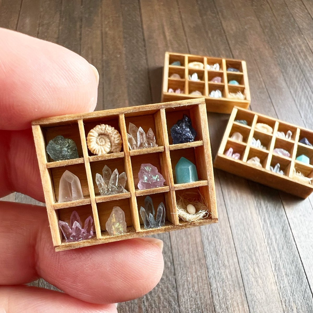 #東京ドールハウスミニチュアショウ での販売作品その2。 お馴染みの鉱石コレクションボックスです💎 展示作品で飾ってあるものと同じカラーで作りました! こちらはお一人様1つのみのご購入でお願いします🙏🏻 #ミニチュア #chocochocoミニチュア